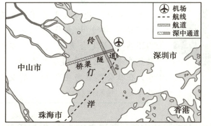 原创预测 2024年6月30日,深中通道全线开通。深中通道全长约24千米,集“桥、岛、隧、水下互通”于一体,是世界上建设难度最大的跨海集群工程。下图为深中通道工程示意图(伶仃洋北侧是珠江入海口和广州港)。据此回答1—2题。