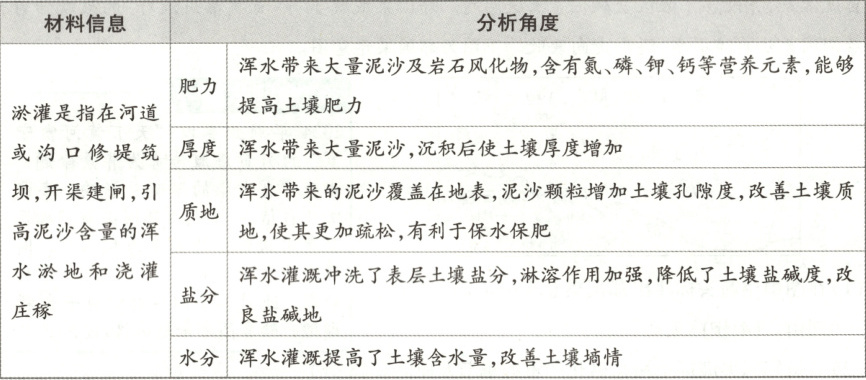 (3)本题实质考查引水淤灌对耕作土壤的影响。具体分析如下: