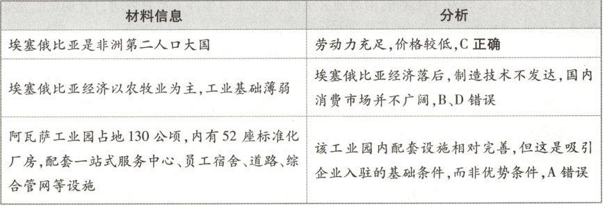 【速解技巧】结合区域认知可知,非洲是世界棉花主产区之一,埃塞俄比亚位于非洲,服装原材料丰富,没必要舍近求远从中国购入原材料