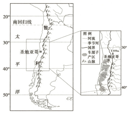 原创预测2 智利盛产车厘子,在“一带一路”倡议下,中国自智利进口车厘子贸易发展迅猛。广州南沙港是我国最大的车厘子进口口岸,自2019年便打通了“车厘子快线”。车厘子到达南沙港后,最快2小时卸船,再经过2小时就能到广州集散市场销售。南沙港国际冷链项目是亚洲港口规模最大的冷链冷库项目,可确保货物从查验到存储全链条不断冷。右图示意智利车厘子主产区位置。据此完成1—3题。