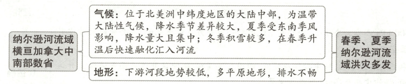(1)指出纳尔逊河流域洪灾频发的季节,并分析其主要原因。(8分)