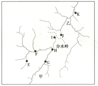 1. 由材料可知,甲河袭夺了乙河,导致乙河上游部分成为甲河的上游。结合图示袭夺后的水系分布可知,发生河流袭夺前,乙河的流向是 E—F—I—J,A 正确。
