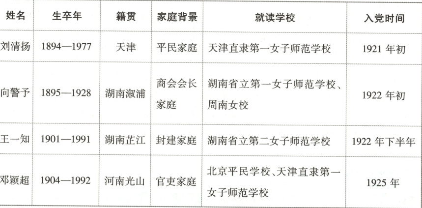 原创预测 1 下面是中国共产党成立早期部分女性党员的个人情况简表。据表可知