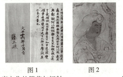 原创预测 1 日本奈良的正仓院保存了光明皇后临摹王羲之的《乐毅论》,光明皇后本姓“藤原”,为模仿唐人的单姓,在卷末落款处署“藤三娘”之名(图 1)。正仓院还藏有一“鸟毛立女屏风”,画中女性丰颊、粗眉(图 2),呈现盛唐审美趣味。这反映出