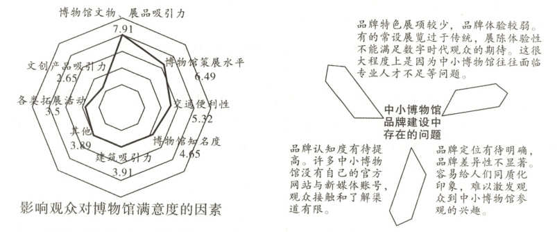 本题设问知识限定为文化知识,切口较大,设问指向“如何提升中小博物馆的品牌影响力”。材料中图片已经明确指出了影响观众对博物馆满意度的因素及中小博物馆品牌建设中存在的问题,据此总结措施,组织答案即可。