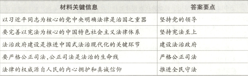本题设问知识限定——政治与法治,设问类型——措施类,设问落脚点——如何推进中国式法治现代化。可结合材料中关于中国式法治现代化的描述,进一步圈定具体知识。具体分析如下: