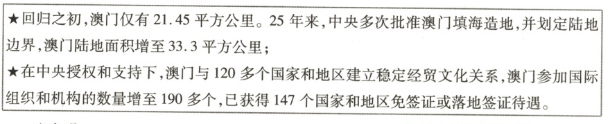 预测角度2 模块融合考查澳门取得成就的原因 热考指数 ★★★★★
