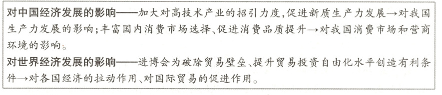 结合材料,运用经济与社会、当代国际政治与经济的知识,谈谈进博会对中国或世界经济发展的贡献。(6分)