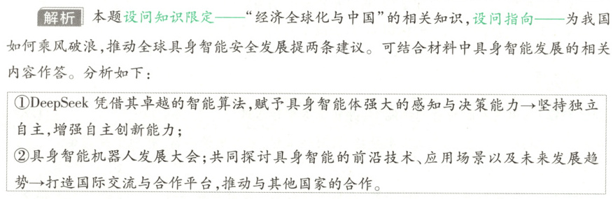 具身智能如潮涌来,请你运用“经济全球化与中国”的相关知识,为我国如何乘风破浪,推动全球具身智能安全发展提两条建议。(6分)