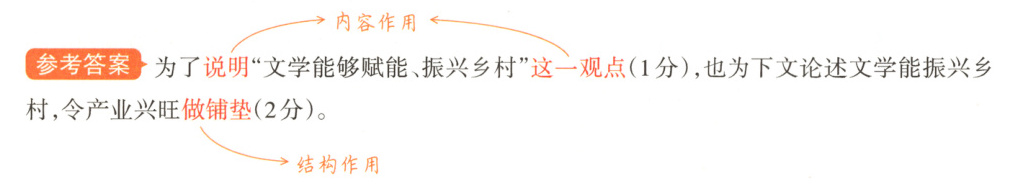 可没”可知,第②段写清溪村的巨大变化是为了证明文学能给乡村振兴带来正能量,起到促进作