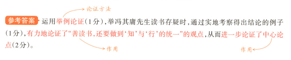 考点推导 题干关键点:例子;作用 → 考查分析论证方法及其作用(举例论证)