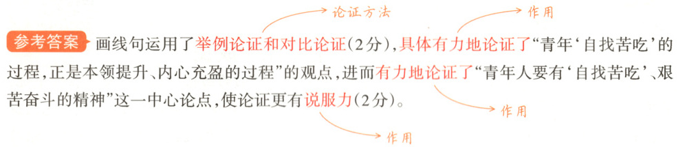 考点推导 题干关键点:画线句子;论证方法;作用→考查分析论证方法及其作用(对比论证)