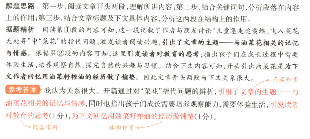 考点推导 题干关键点:开头两段;与下文关系→考查分析开头段作用