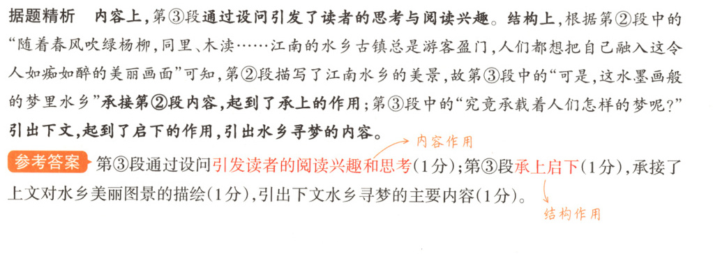 例题展示 请简要分析第③段在全文中的作用。(4分)