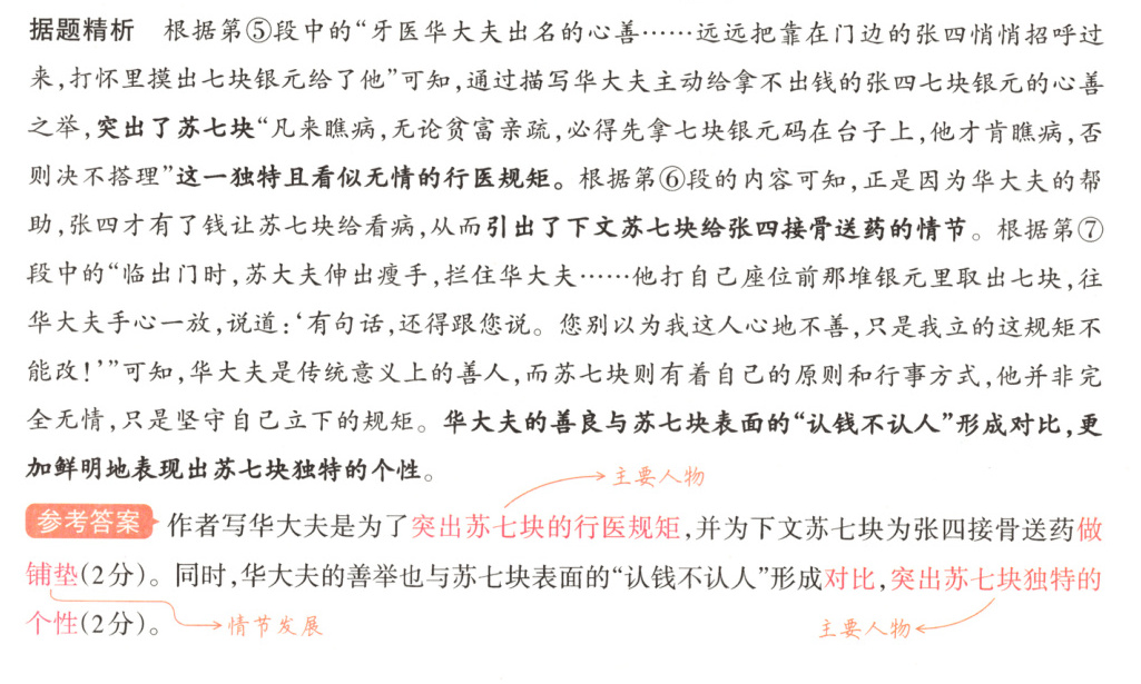 本文主人公是“苏七块”,作者为何要花笔墨写华大夫?(4分)
