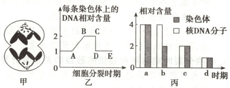 C.图甲细胞分裂后形成的子细胞可对应图乙的 DE 段和图丙的 d 时期