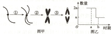 D.若图乙表示每条染色体的 DNA 数量变化,则图乙 ab 段可表示图甲③过程
