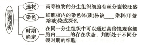 染料(甲紫溶液)染成深色时期确定:在同一分生组织中可以通过高倍镜观察细胞内