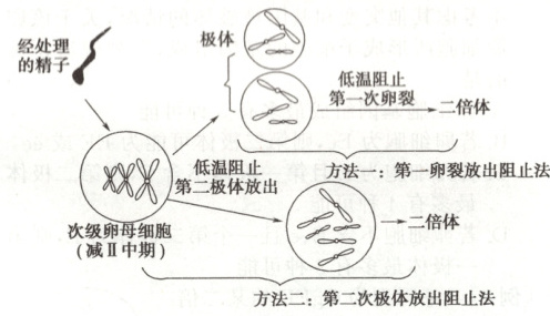 B.方法一中低温阻止第一次卵裂的原理与秋水仙素诱导染色体数目加倍的原理相同