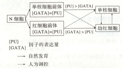 2. (2025·山东潍坊抽测)下图表示人体部分细胞的形成过程,PU、GATA为两种蛋白质,是细胞内调控因子。下列说法错误的是(