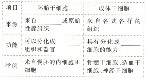 1. 蝌蚪四肢的组织来自于干细胞的增殖分化。(2024·贵州卷,2B)(