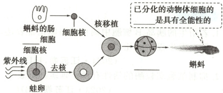 克隆动物的培育(动物体细胞核移植)(以非洲爪蟾的核移植为例):已分化的动物体细胞核是具有全能性的。
