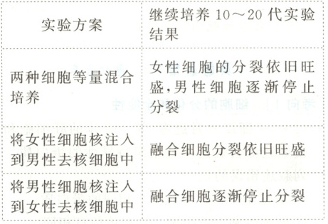 4. (不定项)在人的一生中,体细胞一般能够分裂50~60次。科学家利用分裂了40次的男性成纤维细胞和分裂了10次的女性成纤维细胞进行如下实验。依据实验结果能够得出的结论是(