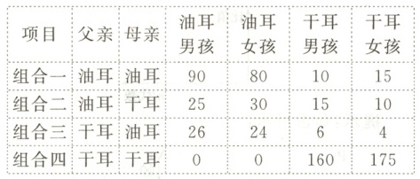 D.组合三中,油耳母亲的遗传因子组成有的是$AA$,有的是$Aa$