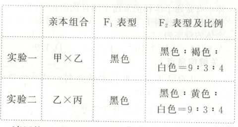 ,只有 F₂ 表型及比例为黑色:褐色:黄色=9:3:4