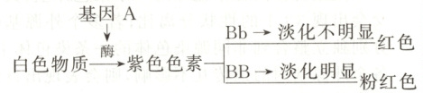 预期结果及结论:若子代出现粉红色、红色、紫色三种花色,且比例为1:2:1,则该红花植株的基因型为AABb;若子代出现紫色、红色、粉红色、白色四种花色,且比例为3:6:3:4,则该红花植株的基因型为AaBb。