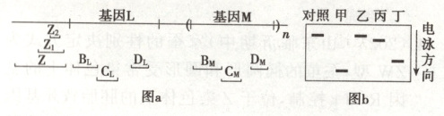 (用Z、部分Z,L、部分L,M、部分M表示)。②对患者丙、丁的酶切产物Z测序后,发现缺失Z₁或Z₂,这两名患者患红绿色盲的原因是_。