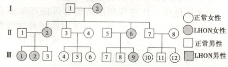 (1) 依据LHON遗传特点,Ⅲ-7与正常女性婚配所生子女患该病的概率为