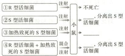 ,分离出S型活细菌③加热致死的S型细菌→注射→小鼠→