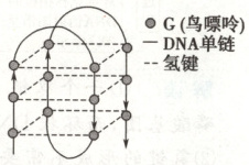 5. (不定项)(2025·江苏南京市模拟)科学家在人体快速分裂的细胞中发现了DNA的四螺旋结构,形成该结构的DNA单链中富含G,每4个G之间通过氢键等形成一个正方形的“G4平面”,继而形成立体的“G四联体螺旋结构”(如图)。下列叙述正确的是(