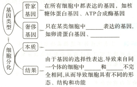 1. (必修2 $P_{72}$“思考·讨论”)3种细胞中的DNA都含有卵清蛋白基因、珠蛋白基因和胰岛素基因,但只检测到其中一种基因的mRNA,这一事实说明了什么?