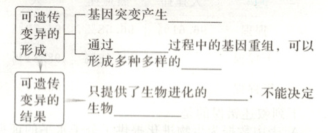 | 可遗传变异的形成 | 基因突变产生新的基因;通过有性生殖过程中的基因重组,可以形成多种多样的基因型 |