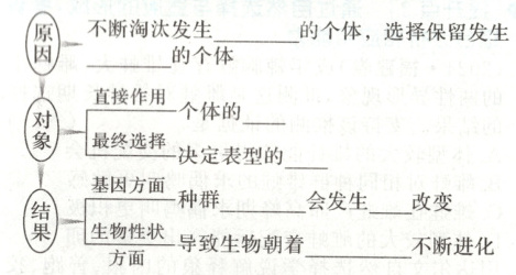 不利变异;有利变异;表型;基因;基因频率;定向;适应环境的方向