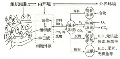 进行物质交换。(2) 内环境与外界环境的物质交换过程,需要体内