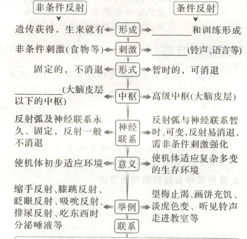 3. (情景探究)条件反射是在非条件反射的基础上通过学习和训练建立的。如铃声与食物多次结合,就可以使狗建立条件反射。