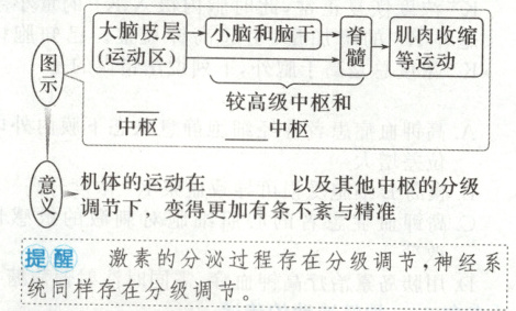 提醒 激素的分泌过程存在分级调节,神经系统同样存在分级调节。
