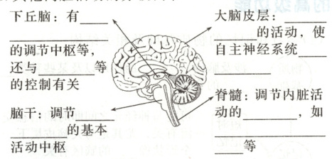 (2)下丘脑:体温、水平衡、血糖;生物节律