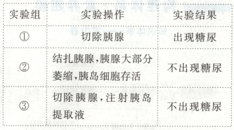 3. (情景探究)如表是科学家为揭开糖尿病的发病原因,以狗为实验动物进行研究,对该实验结果的分析: