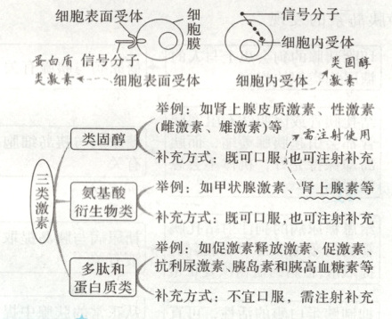 ②类固醇激素(如肾上腺皮质激素、性激素(雌激素、雄激素)):
