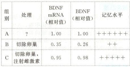3. 有研究认为,雌激素能改善动物记忆,为探究其可能机理,某研究团队利用大鼠进行试验,研究数据如下表: