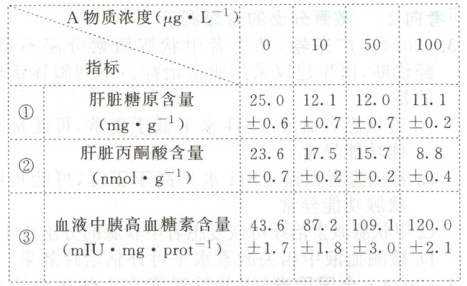 3. (2023·湖北卷)为探究环境污染物 A 对斑马鱼生理的影响,研究者用不同浓度的污染物 A 溶液处理斑马鱼,实验结果如下表。据结果分析,下列叙述正确的是 (