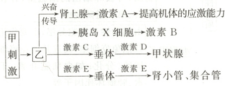 (1)图中的“甲刺激→乙→肾上腺→激素A"这一途径属于