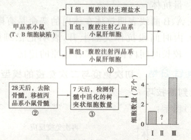 B.③中活化的树突状细胞可识别丙品系小鼠的抗原