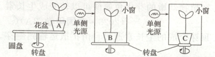 )A.若A花盆随转盘旋转,花盆中的小苗将会背离圆心生长