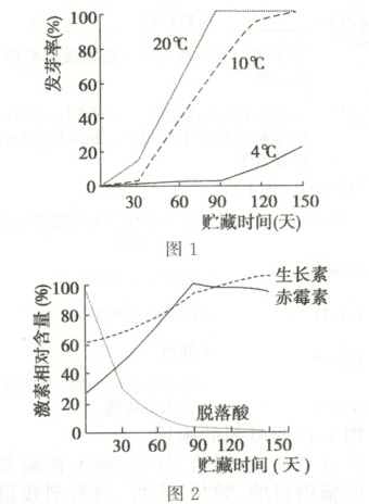 )A.贮藏第60天时,4℃下马铃薯块茎脱落酸含量可能高于20℃