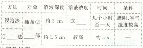 浓度,在此浓度下植物插条的生根数量最多,生长最快。(2)实验方法